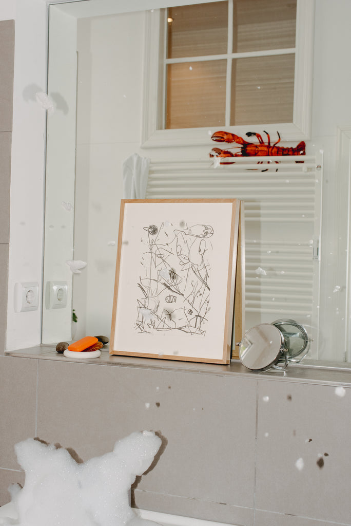 Der Druck ist mit oder ohne maßgefertigtem Rahmen verfügbar. Wir haben wie abgebildet einen Rahmen aus gewachster Eiche ausgewählt.